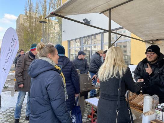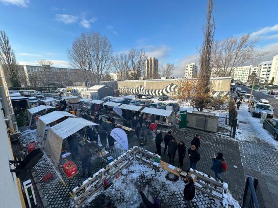 Dabei wurden an verschiedenen Ständen nachhaltig gefertigte Geschenkideen, warme sowie kalte Getränke und Speisen angeboten. Über die gesammelten Spenden freute sich die Berliner Kältehilfe.