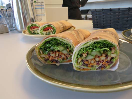 Wraps mit geräuchertem Tofu sowie klassische Käse- und Schinken-Sandwiches.