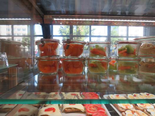 Wenn Sie keine Zeit zum Speisen vor Ort haben, können Sie gegen 1 Euro-Pfand auch bunt gefüllte Weckgläser unter anderem mit einem Mix aus frischen roten Früchten oder Gemüsesticks in allen Farben kaufen. Sie können auch Speisen unverpackt erwerben und in ihren eigenen Behältnissen mitnehmen, denn das Konzept vom Bistro 125 basiert nicht nur auf gesunder Ernährung, sondern auch auf Umweltbewusstsein. Die Bistrobeschäftigten sind ständig darauf bedacht, den Plastik- und Müllverbrauch zu reduzieren und ein erdölfreies Mehrweg-System umzusetzen.